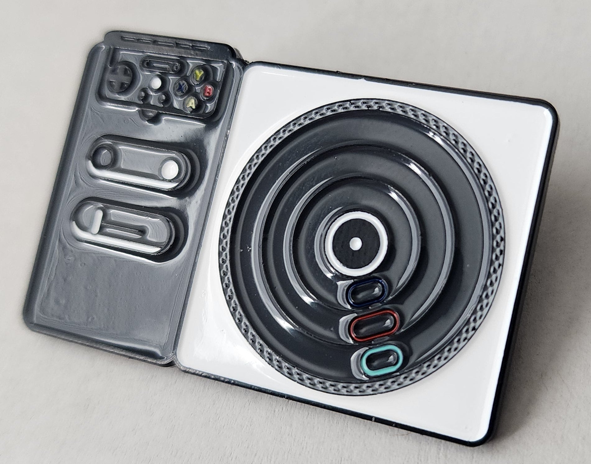 Introducing the DJ Hero Turntable Pin - a must-have for all true DJs! Made with high-quality enamel, this pin pays tribute to the iconic turntable set. Perfect for showcasing your love for DJing and nostalgia for the classic game. Limited stock available, get yours now!