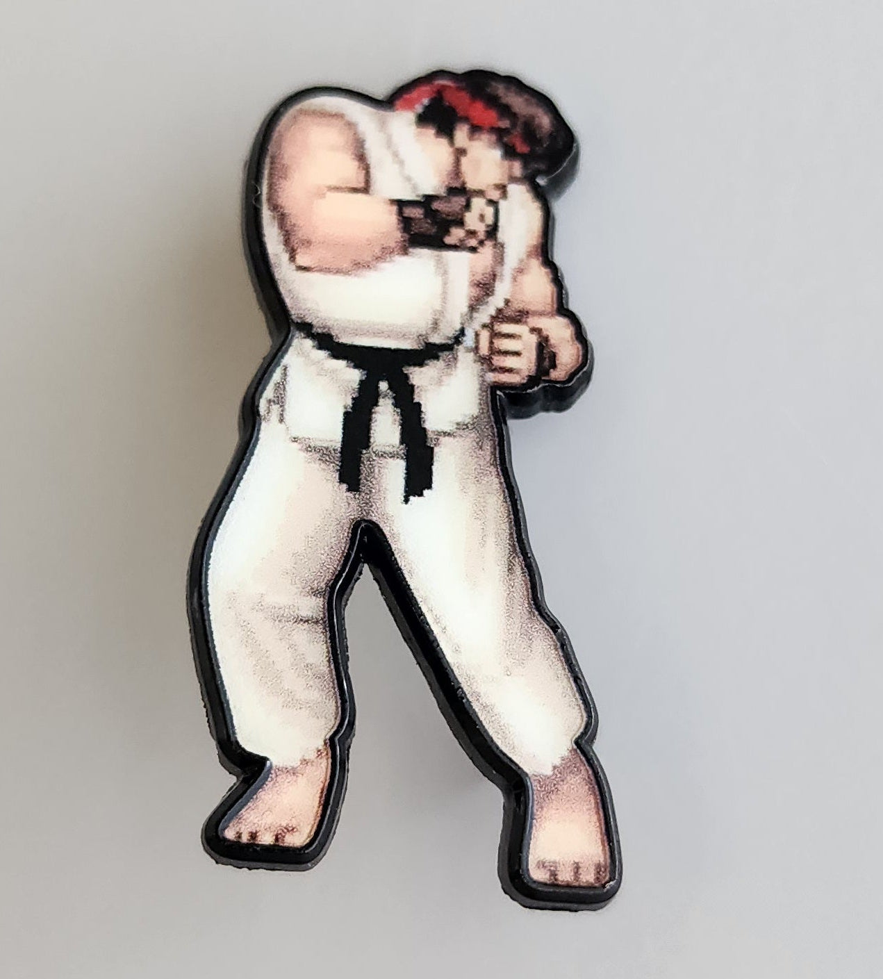 Challenge any opponent with our Ryu Pin! Featuring the iconic street fighter in his fierce fighting stance, this pin is perfect for those who love to take risks. Are you ready for a new challenge? Show off your bold and daring style with our Ryu Pin!